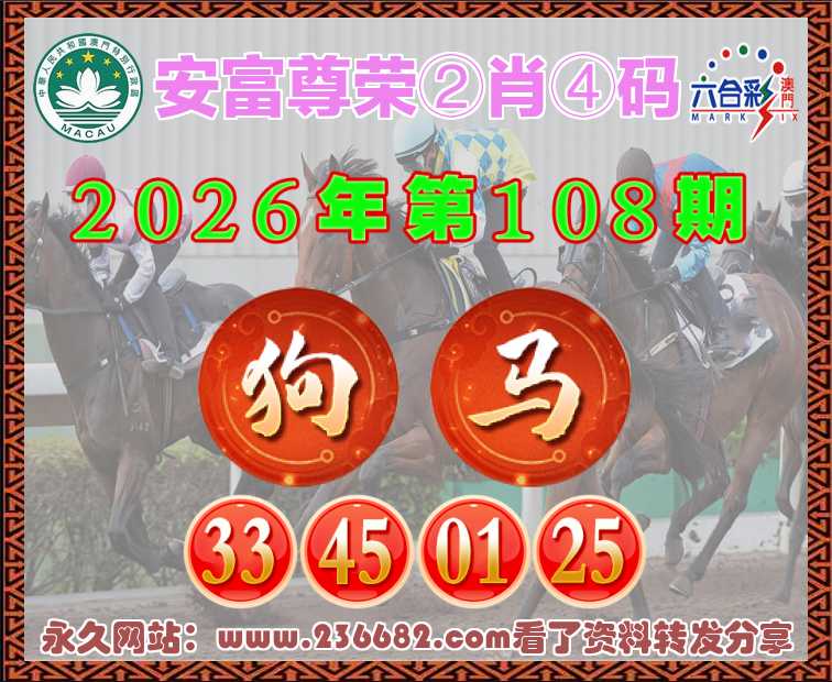 108期:《安富尊荣》②肖④码⌚【马】【33.45.01.25】开:狗45